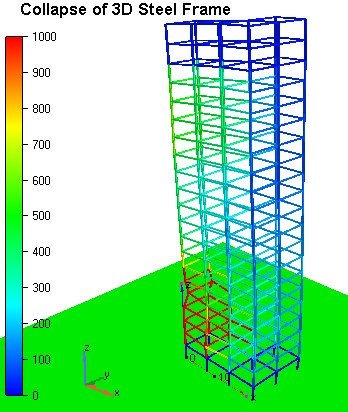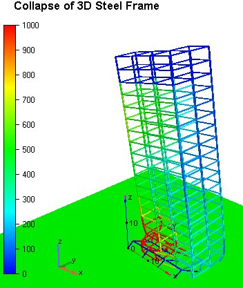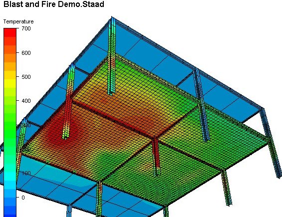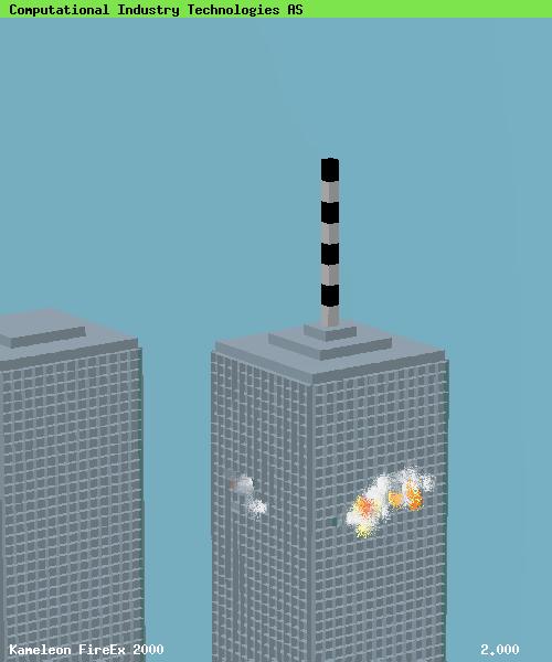 Figure 2 : Collapse of building. Structural temperatures are visualized, (degrees C).